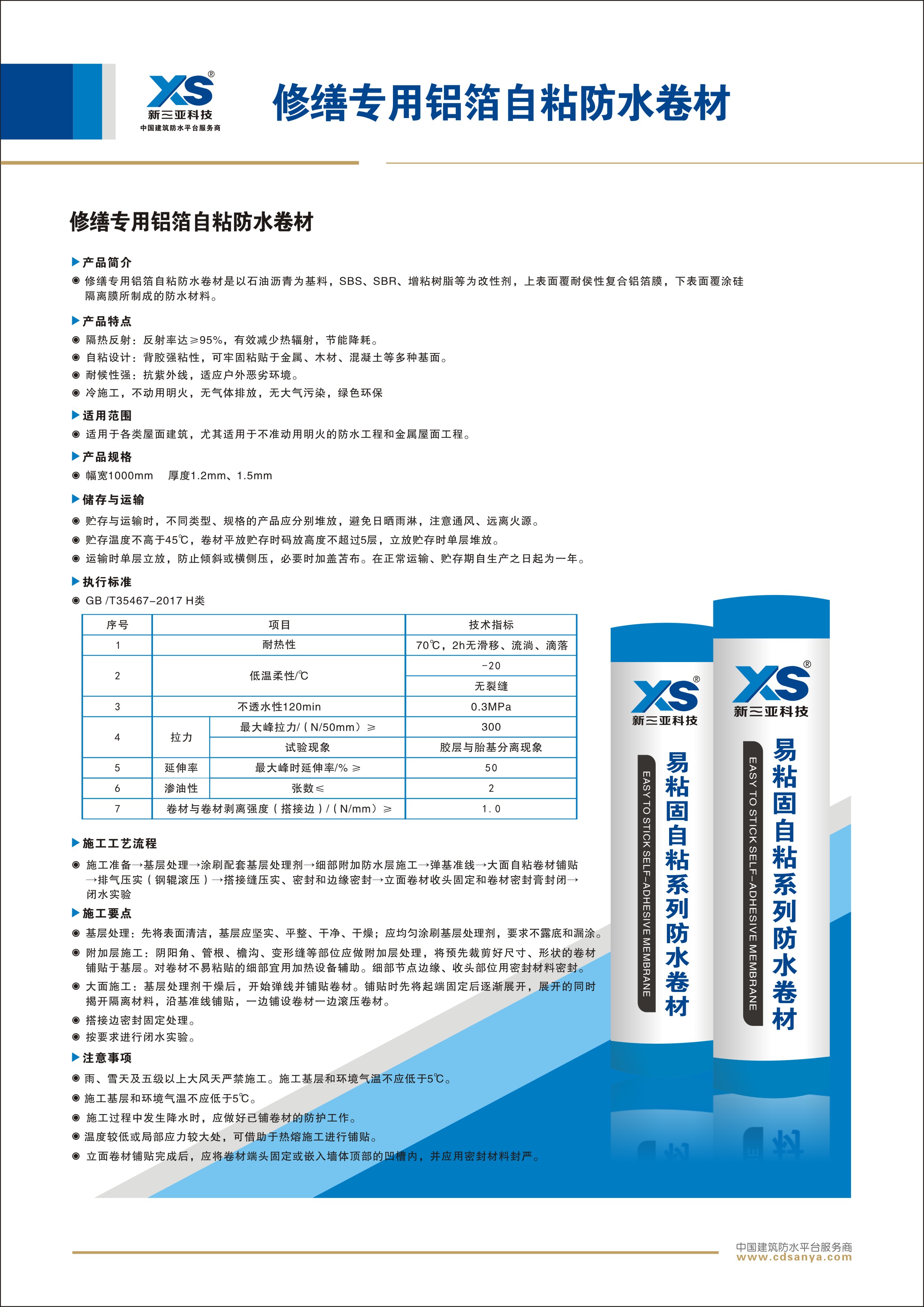產(chǎn)品簡介 修繕專用鋁箔自粘防水卷材以石油瀝青為基料,SBS、SBR、增粘樹脂等為改性劑,上表面覆耐侯性復合鋁箔膜,下表面覆涂硅隔離膜所制成的防水材料。 規(guī)格:1.2mm 1m×20 m | ![]() |